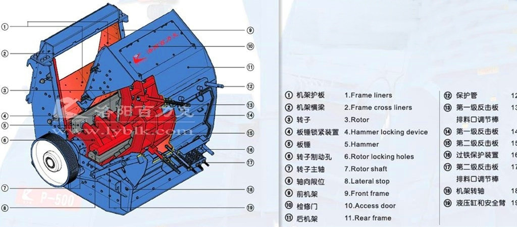 B:百力克P系列粗碎反擊式破碎機的大型破碎腔、既可破碎更大的粒度,又能改變出料粒度的分布,增加細料比例。